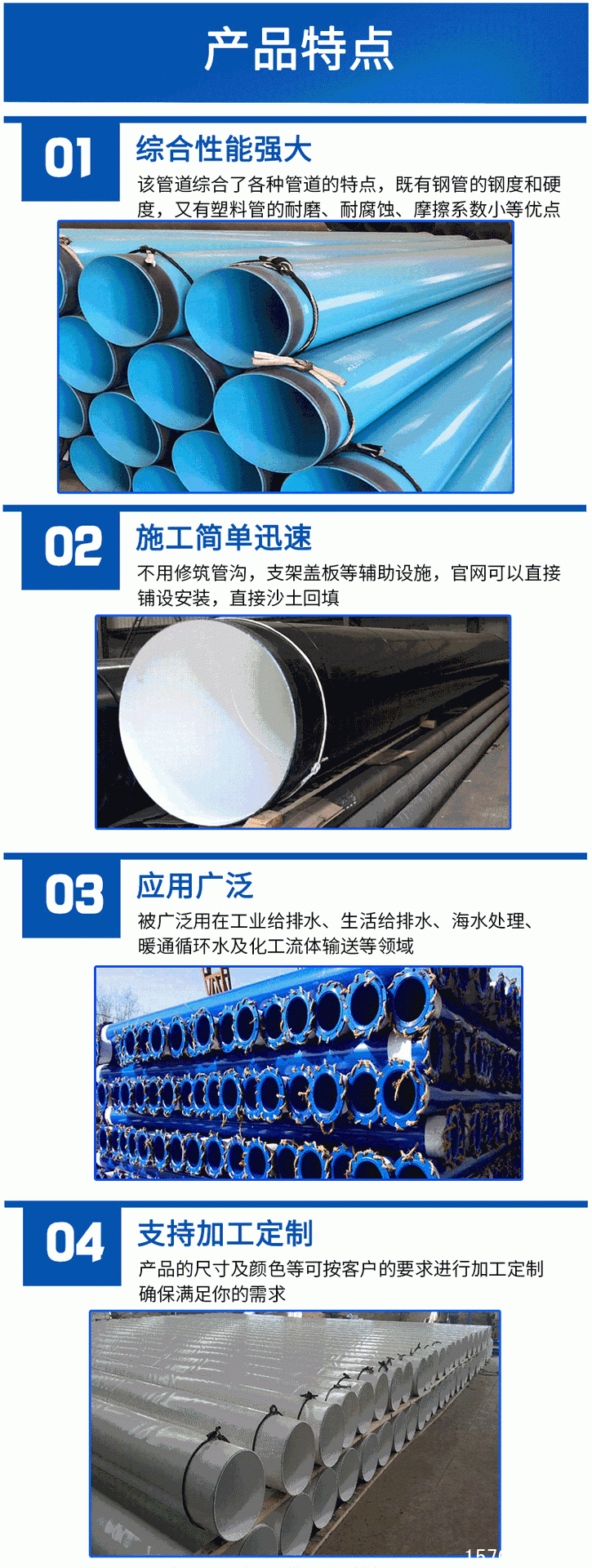 3PE 防腐鋼管和 TPEP 防腐鋼管:普遍用于燃氣輸送和自來水輸送。3PE 防腐為三層聚乙烯涂層防腐,TPEP 防腐為內環(huán)氧樹脂涂層和外三層聚乙烯涂層防腐。熱塑性環(huán)氧粉末涂料具有優(yōu)良的耐候性、耐化學性和良好的附著性,在抗腐蝕方面性能良好。而三層 PE 材料的防腐能力相對較強,在腐蝕環(huán)境下使用壽命更長。TPEP 防腐螺旋鋼管適用于海洋、沿海、草原、鹽霧等惡劣環(huán)境下的輸水、輸油、輸氣等領域,3PE 防腐鋼管廣泛用于城市供水、燃氣、天然氣、石油、化工等領域。